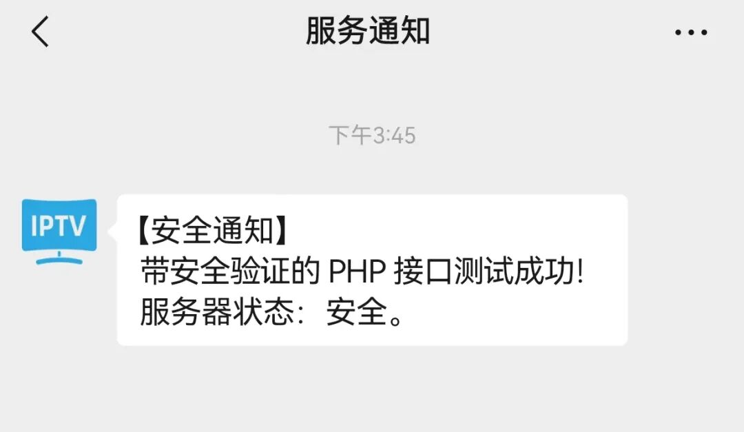 message = "【安全通知】\n带安全验证的 PHP 接口测试成功!\n服务器状态:安全。"