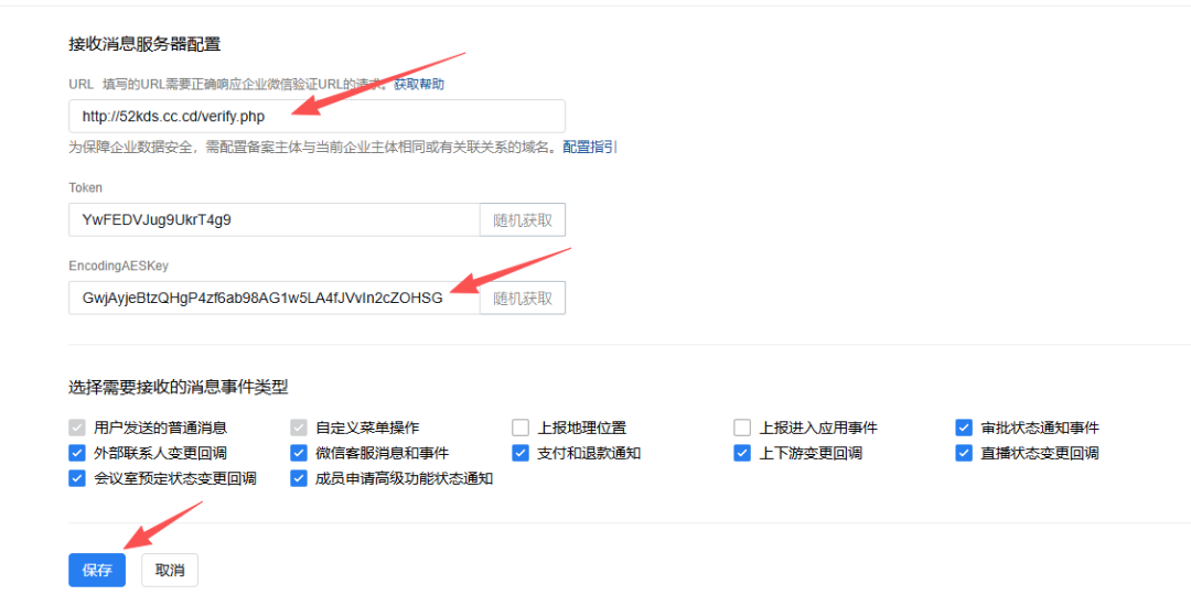 EncodingAESKey点击随机获取并填入到verify.php文件的$AES_KEY值,verify.php文件代码如下: