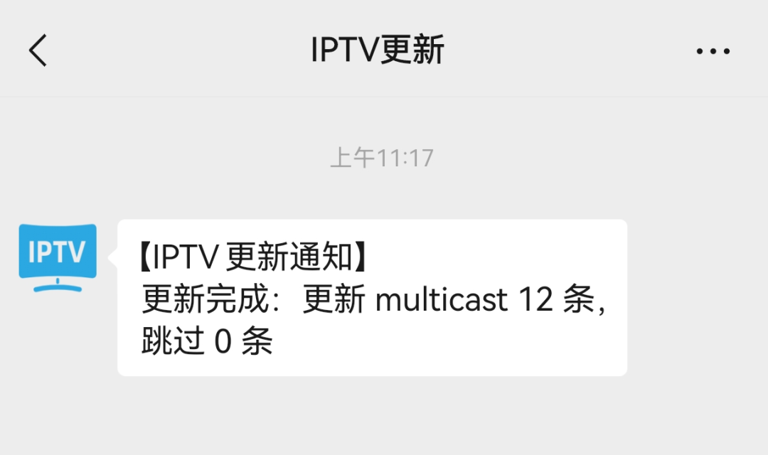 后面需要通知的地方使用requests post 即可将message推送到微信了,例如我的自动更新IPTV通知项目: