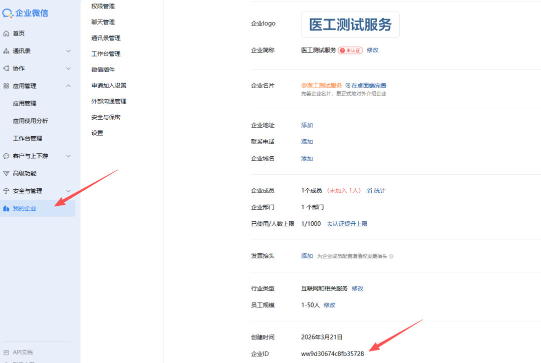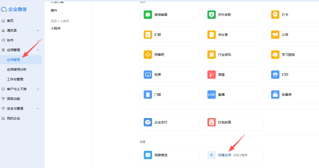 准备工作:在企业微信创建应用